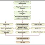 The Th1 and Th17 arms of CD4+ T cells modulate immune activity via IFN-γ and IL-17 release, contributing to inflammatory signalling 13. Macrophage activation by IFN-γ production boosts MHC expression in dendritic cells, aiding T-cell antigen recognition. Likewise, IL-17 from Th17 cells extends and amplifies inflammation. Additionally, AA sees an increase in IL-2 and IL-6 levels, with IL-2 promoting T-cell proliferation and IL-6 playing a key role in B-cell activation and overall inflammatory processes 14. TNF-α is an essential cytokine that stimulates immune cell activation and migration, heightens inflammation, and exacerbates hair follicle damage. The cooperation among cytokines sustains the inflammationin AA. IFN-γ strengthens TNF-α’s activity, further aggravating inflammation. Such disturbances affect the hair cycle by delaying the normal switch from the growing to the resting phase, resulting in early hair loss15.In AA, regulatory T-cell dysfunction diminishes their ability to control effector T-cell activity, leading to immune dysregulation and an excessive autoimmune response 13. Histological analysis of the affected tissue revealed a dense infiltration belonging to CD8+ T lymphocytes, compromising the structural integrity of hair follicles 14. A visual summary of the immune dysregulation and follicular destruction in AA is illustrated in Fig. 1.
