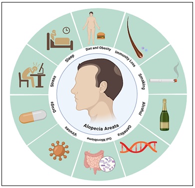 FIG. 2: VISUAL SUMMARY OF THE MULTIFACTORIAL TRIGGERS CONTRIBUTING TO THE PATHOGENESIS OF AA