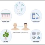 Role of Exosomes: Extracellular vesicles, including exosomes, are tiny vesicular bodies released by cells into various biofluids, with dimensions generally between 30–150 nm. Laden with bioactive molecules, they are gaining attention for their potential therapeutic uses 117. Exosomes, a specialized type of extracellular vesicle (EVs), can efficiently cross cell membranes and exhibit a reduced likelihood of provoking immune reactions 118. Recent studies highlight the promising role of stem cell-derived exosomes in hair follicle repair and regeneration. Specifically, mesenchymal stem cell-derived exosomes enhance DPC activity by promoting their proliferation and movement in mice. This process triggers the release of essential growth factors like IGF-1 and VEGF, aiding hair restoration 119. Furthermore, integrating exosomes with microneedling (MN) has gained attention as a novel approach for enhancing hair growth. In particular, Microneedle systems with PVA tips and HA bases, enriched with chitosan lactate and ADSC-derived exosomes, show promising therapeutic effects 120. Exosomes show promise as a potential therapeutic modality, indicating their future role in advanced treatment approaches.