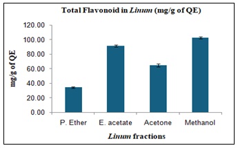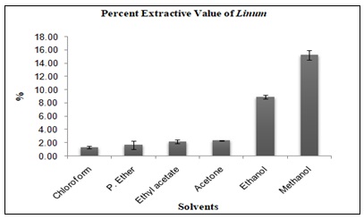 Extractive Value: The dry powdered plant material of Linum usitatissimum L. was extracted with methanol, ethanol, acetone, chloroform, ethyl acetate, and petroleum ether using a maceration process.
