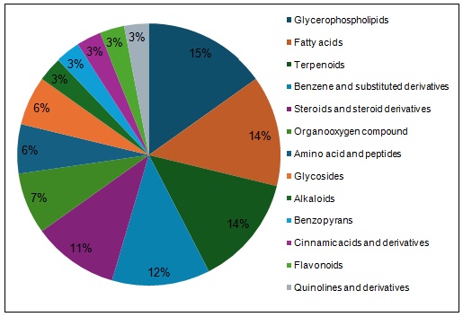 FIG. 10: MAJOR METABOLITE CLASSES DETECTED IN LINUM USITATISSIMUM L. METHANOLIC EXTRACT