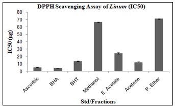 Interpretation of Results in the Context of Existing Literature: The interpretation of the results from this study aligns with and extends the existing literature on the antioxidant properties and chemical composition of Linum usitatissimum L. (flaxseed). Previous research has consistently highlighted the rich phenolic and flavonoid content of flaxseed, attributing significant antioxidant properties to these compounds 2, 3. The high extractive values observed for methanol and ethanol in this study, with methanol showing the highest extraction efficiency (15.23% ± 0.702), confirm these solvents' effectiveness in isolating these potent antioxidants. This finding is consistent with Koçak (2024), who reported similar solvent efficiencies.
