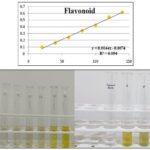 Procedure: Total flavonoid content was measured by the aluminum chloride colorimetric assay. The reaction mixture consists of 1mg of extract and 4 ml of distilled water was taken in a 10 ml volumetric flask. To the flask, 0.30 ml of 5% sodium nitrite was treated and after 5 minutes, 0.3 ml of 10% aluminum chloride was mixed. After 5 minutes, 2ml of 1M Sodium hydroxide was treated and diluted to 10 ml with distilled water.