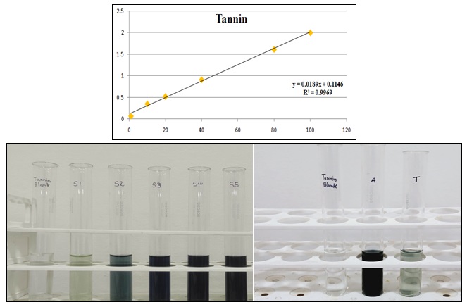 Principle: Tannins like compounds reduce posphotungsto molybdic acid in alkaline solution to produce a blue colour complex and the colour intensity is proportional to the concentration of tannin and measured at 700nm.