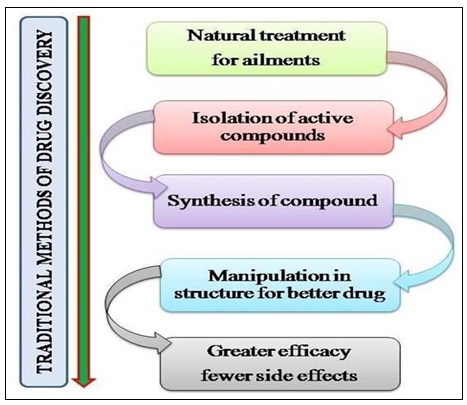 How to Access Natural Products Bioactivity: The first isolation of a single chemical entity from natural pattern, that is morphine from opium, the latex from Papaver somniferum, by Friedrich Wilhelum Serturner in 1804 3 is one of the pharmacognosist’s goals to enhance the known chemical space by isolation of natural compound and establishing their structure. It provides interesting novel templates for synthetic chemists and serves as chemotaxonomic tool to support phylogenetic relationship. It provides a glimpse of structural requirement for an evolutionary trimmed bioactivity, allied target is usually unknown in first place. One of the most acknowledge procedure used to discover nature’s bioactivity is the exploration of curing or preventive agents traditionally employed by man, called Ethno- pharmacology 4 which is related to the study of ethnic groups and their use as drugs. It is distinctly linked to plant use. The biorational approaches can help staggeringly in the search for any bioactivity and still many more important findings of pharmaceutical interests. The differentiation between the traditional and modern drug discovery methods is made in Fig. 2A and 2B.
