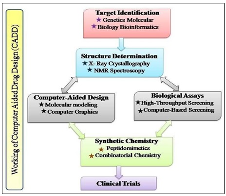 ABSTRACT: The computer-aided drug design (CADD) symbolizes an intricate discipline exploitation accomplishment in varied areas of science and varied strategies and approaches. It tends to speed-up and optimize discovery of latest biologically active compounds. However, these approaches cannot replace the experimental tests. The aim of CADD is to generate hypotheses regarding probable new ligands and their interaction with targets. It's considered that these strategies will decrease the quantity of the compounds that are required to be synthesized and tested for biological activity up to 2 orders. Thus, they're capable to decrease basically time consuming monetary expenses for development of medicine. A Recent terribly effective technique in era is drug designing through computers. CADD technologies are employed in technology, biological science, organic chemistry etc. The main advantage of the CADD is value effective in analysis and development of medicine. There are wide ranges of software that are employed in CADD, Grid computing, window primarily based general PBPK/PD modeling computer software, PKUDDS for structure based drug design, APIS, JAVA, Perl and Python. The various techniques that are enclosed in CADD are visualization, homology, molecular dynamic, energy minimization molecular docking, QSAR etc. CADD is applicable in cancer disease, transportation of drug to specific site in body, information collections and storages of organics and biologicals. This article conjointly deals with the development of structure-based drug design for human herpes virus (HHV) infection that implicates selecting the target proteins, visualizing the target structure, identifying the binding site, docking up the ligands and evaluating those using computational techniques.